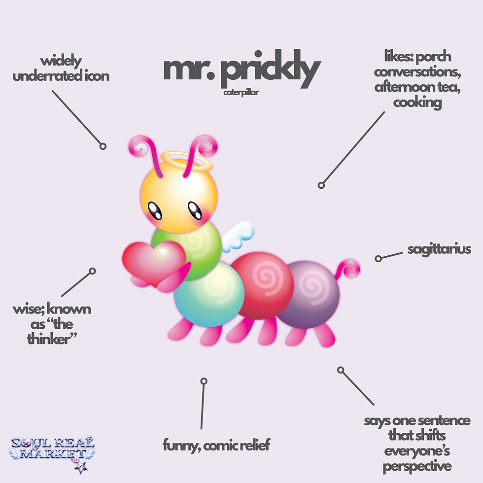 Meet the official Soul Real Market babies and their lore! The mascots of our market and our Soul Mates need to know the lore. Read below for each character <3