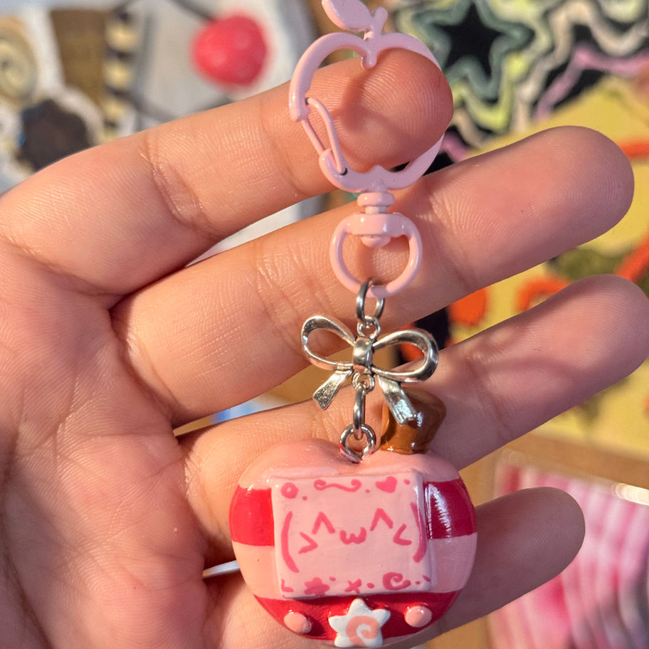 𓏲ּ𝄢 handmade & painted polymer clay Applegotchi charms,silver plated charms,assembled on cutie apple keychain hardware! Tamagotchi Luvers RISEE!! Here’s a fun wacky spin on the classic Tamagotchi Toys including fun striped red & green Applegotchis featuring fun emotes on each keychain with a possible silly surprise that awaits inside *mr.worm* ૮ • ﻌ - ა .☘︎ ݁˖SHIPPING IS INCLUDED IN THE PRICE .☘︎ ݁˖ જ⁀➴ ♡All polymer clay creations are each handmade so each piece will be unique!!