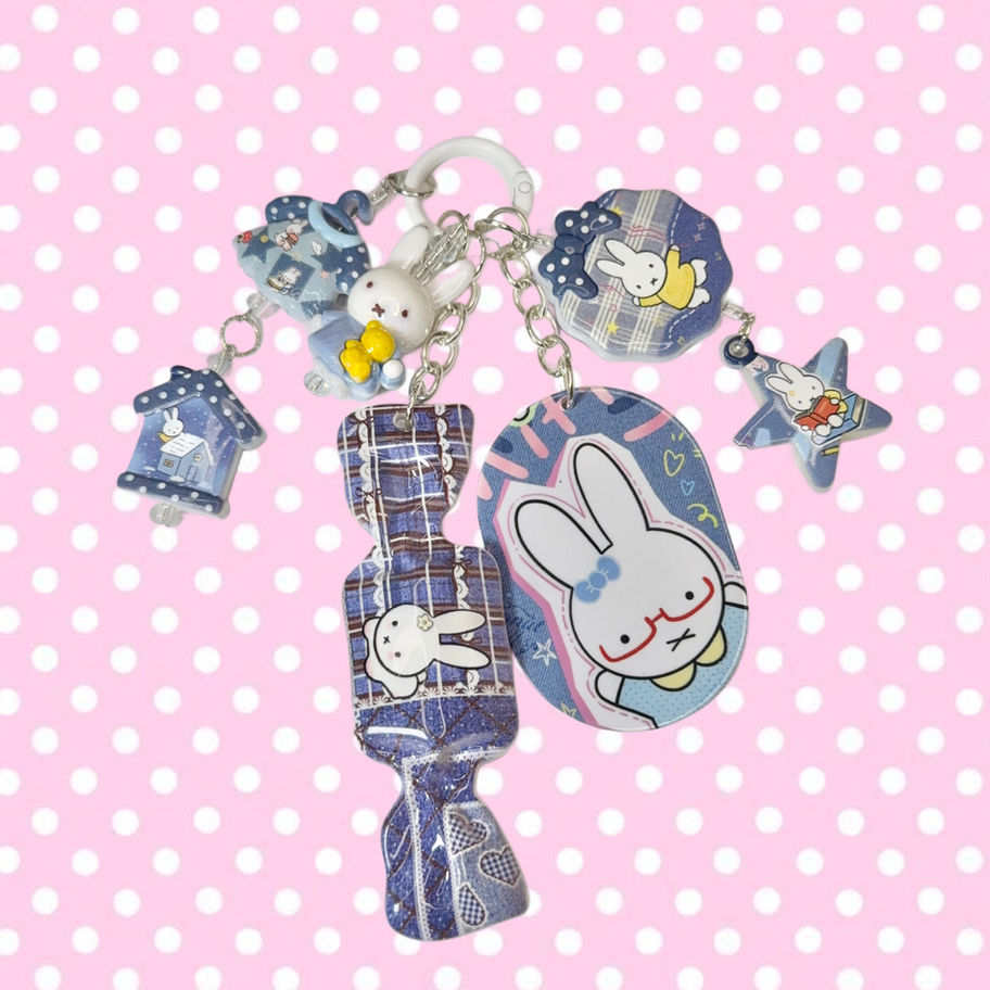 Handmade Denim Miffy keychain! ପ(๑•ᴗ•๑)ଓ ♡ All beads, charms, and Acrylic were handpicked and put together by hand onto one keychain. A fun way to accessorize your keys, phone, or bag for all the Miffy lovers! ♡‧₊˚ All Zelliekawaii keychains are one-of-a-kind as duplicates are not made, allowing you to have a unique keychain every time! ✮⋆˙ Dimensions: 4.5 x 5 x 1" & 1.7 oz ⋆˚✿˖°⊹ ࣪ ˖