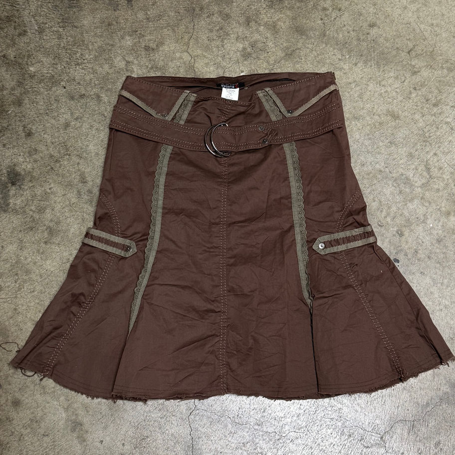 vintage morgan de toi midi skirt brown/green - lace details upside down tag slight distressing at hems fits size large best 17” waist + 22.5” length