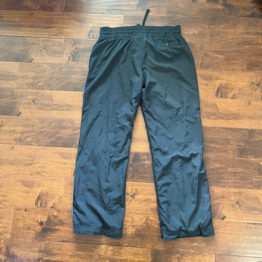 Nike Black and Purple Stripe Track Pant Waist is 16 inches Hip seam is 31 inches Leg opening is 9.5 inches