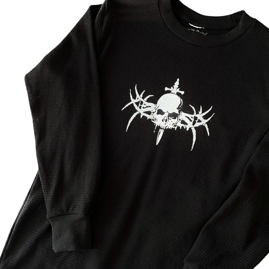 Skull and Dagger Black Waffle Knit Thermal Long Sleeve T - Shirt