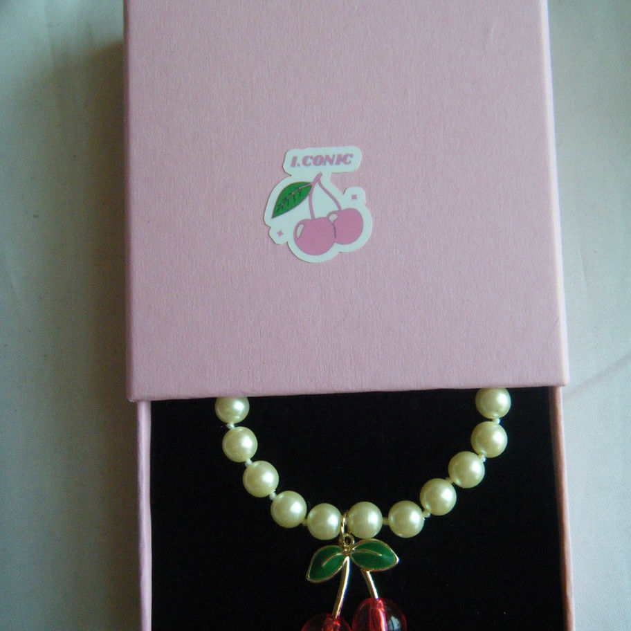This sweet y2k Cherry Pearl Necklace showcases our signature cherry charm on vintage pearl necklace that adds a playful yet sophisticated touch. Its adjustable length offers customizable wear, ensuring comfort and style for any occasion. Approximately 14-16"